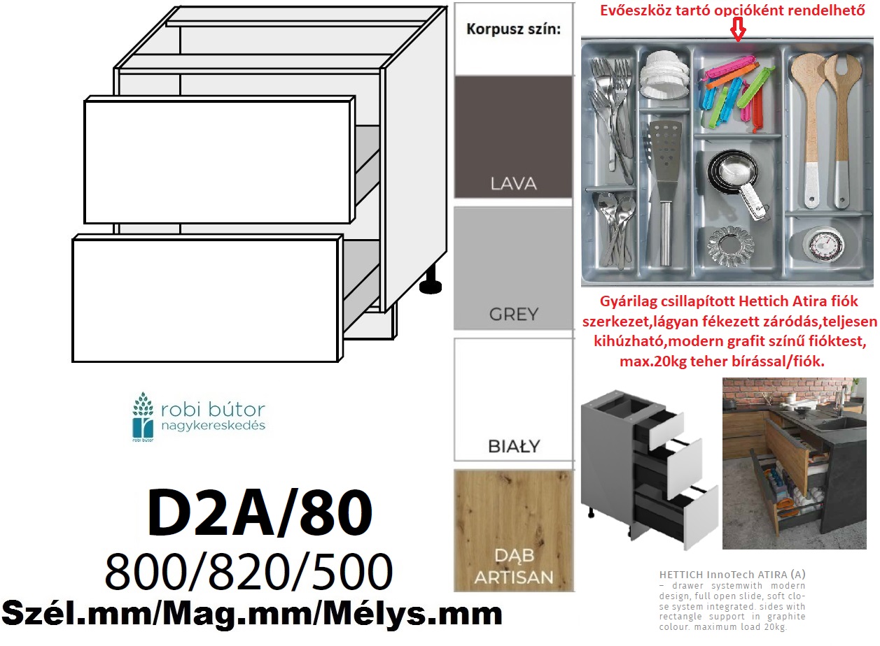 AVELLINO MATT 2 FIÓKOS szekrény 80 cm (D2A 80)_konyhabútor