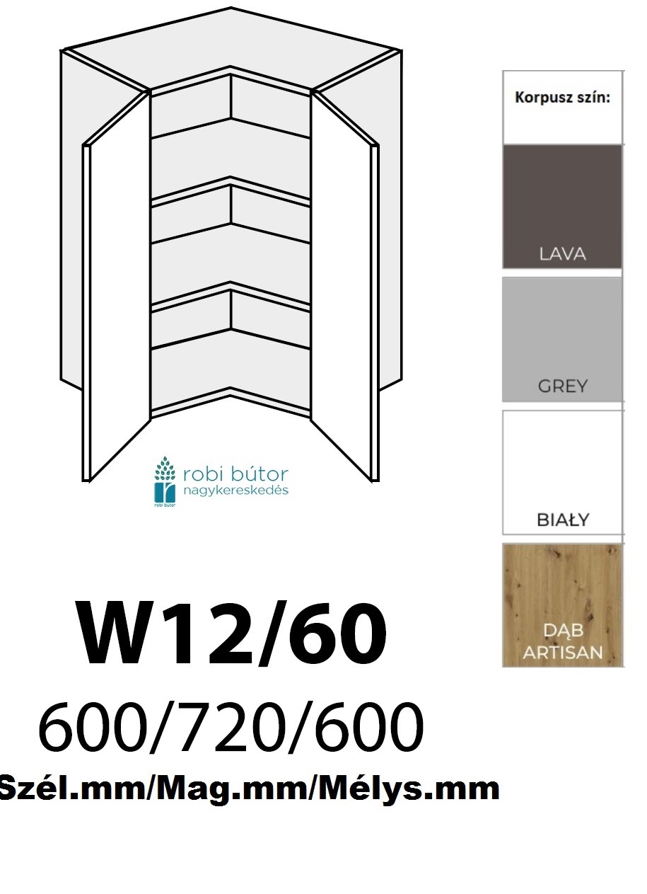 BARI MATT 2-ajtós SAROK FELSŐ szekr. 60 cm (W12 60)_konyhabútor