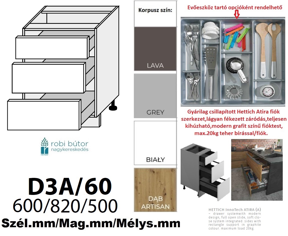 BARI MATT 3 FIÓKOS szekrény 60 cm (D3A 60)_konyhabútor
