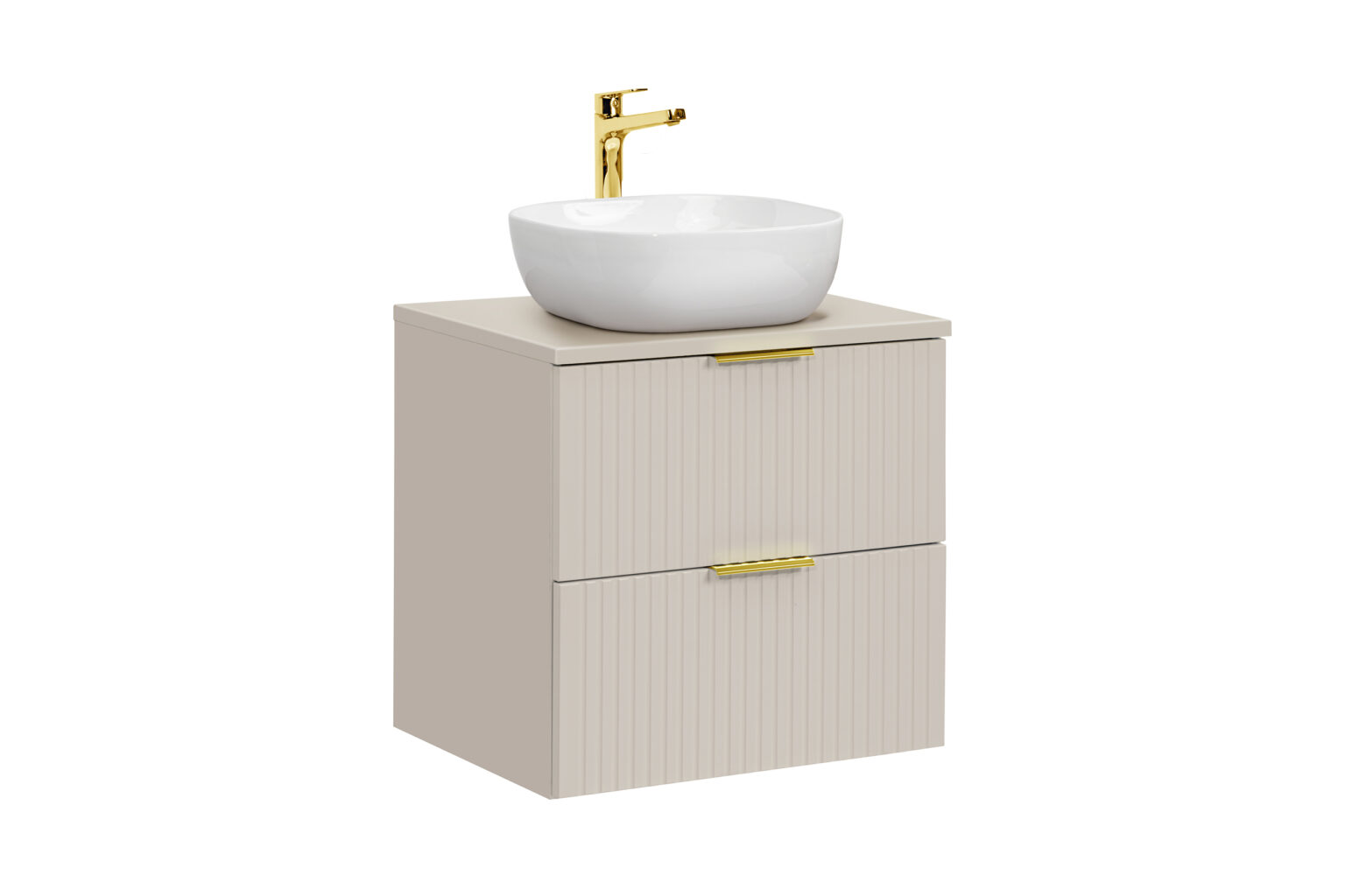 Cikkszám (SKU): SET-ADC B CASHMERE 60CM SMILE 40 HIGH CABINET. ADEL KASMIR komplett fürdőszoba bútor szett 60 cm – komplett ADEL KASMIR fürdőszoba bútor szett ~60 cm körüli szélességgel. Finom kasmír szín, hornyolt MDF front, csendes záródás, falra szerelhető elemek opcióval. A csaptelep és/vagy szifon általában nem tartozék.