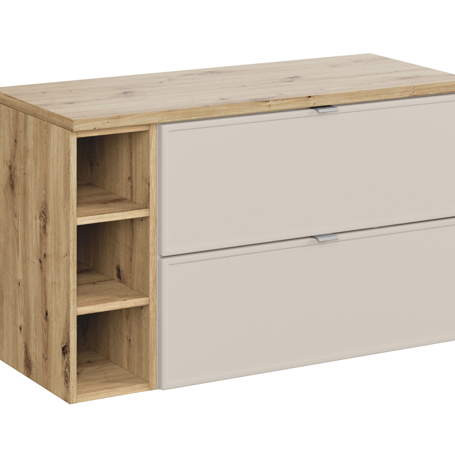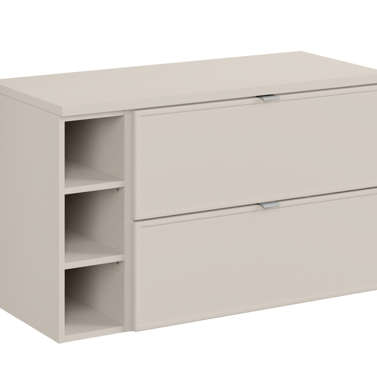 BELLA KASMIR komplett fürdőszoba bútor szett 100 cm TRUST tálmosdóval – SET-BC B CASHMERE 100CM UN TRUST WH – inspiráló 2026 BELLA KASMIR fürdőszoba bútorcsaládhoz illeszkedő elem.