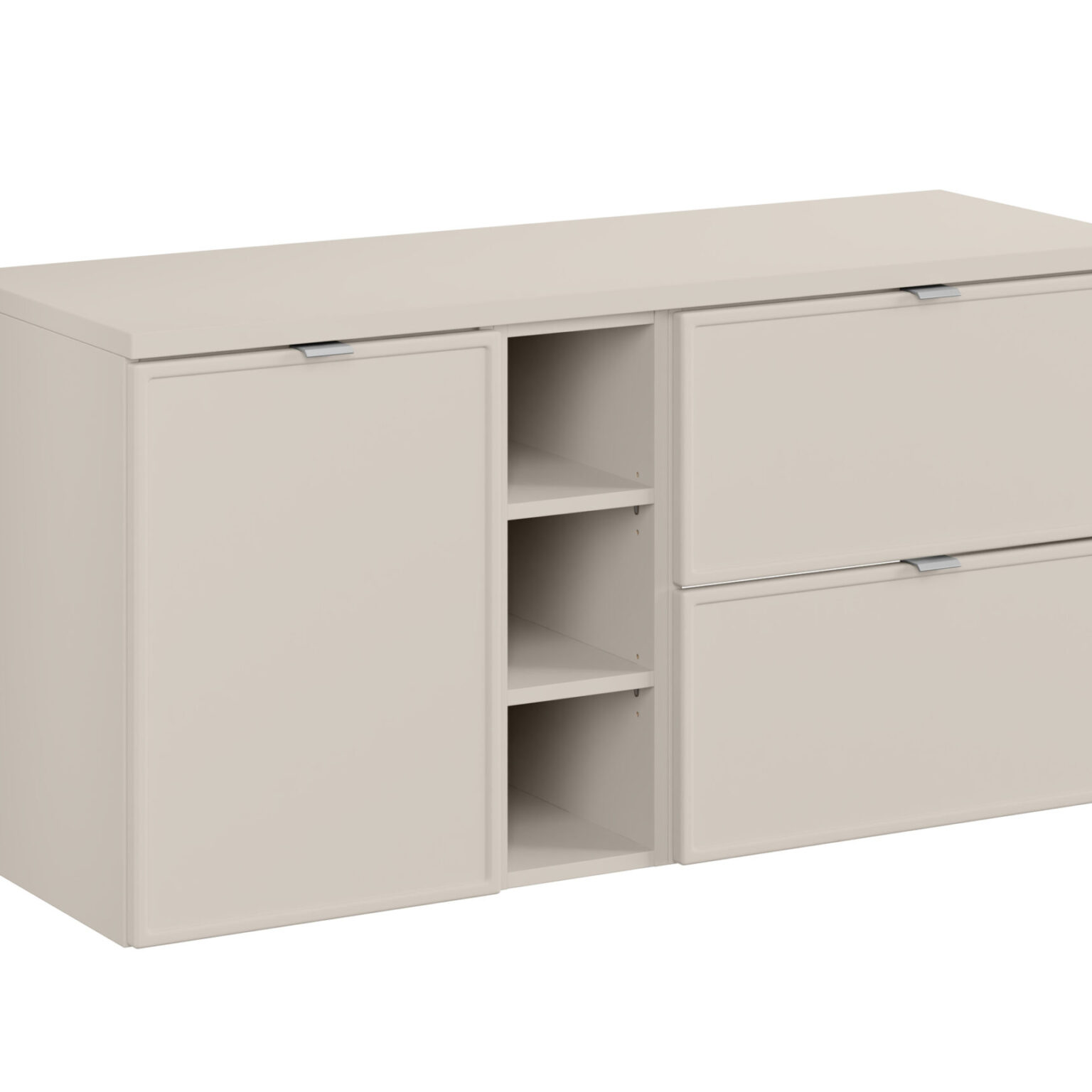 BELLA KASMIR komplett fürdőszoba bútor szett 120 cm SMILE tálmosdóval – SET-BC B CASHMERE 120CM UN SMILE 50 LB – inspiráló 2026 BELLA KASMIR fürdőszoba bútorcsaládhoz illeszkedő elem.
