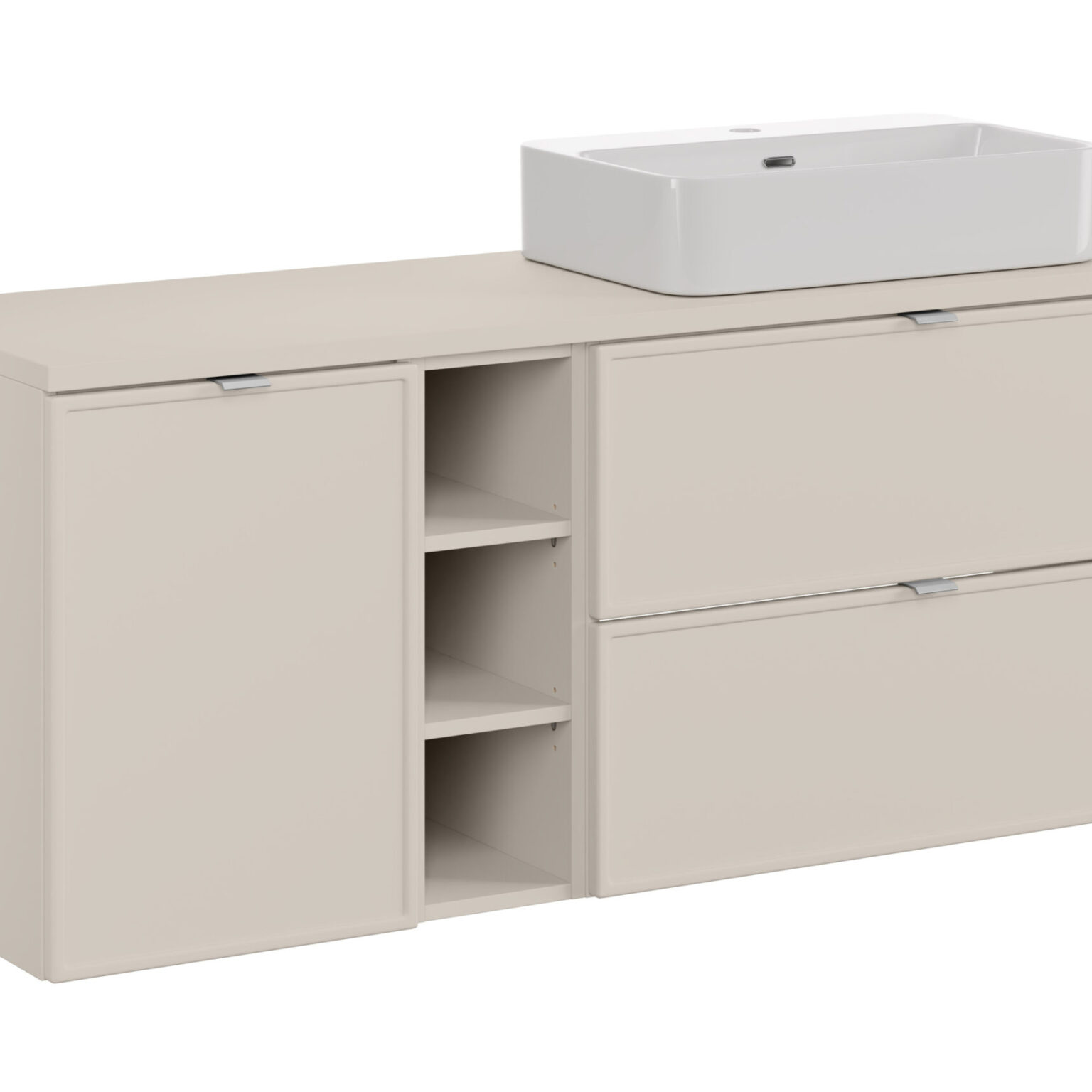 BELLA KASMIR komplett fürdőszoba bútor szett 140 cm TRUST tálmosdóval – SET-BC B CASHMERE 140CM UN TRUST WH – inspiráló 2026 BELLA KASMIR fürdőszoba bútorcsaládhoz illeszkedő elem.
