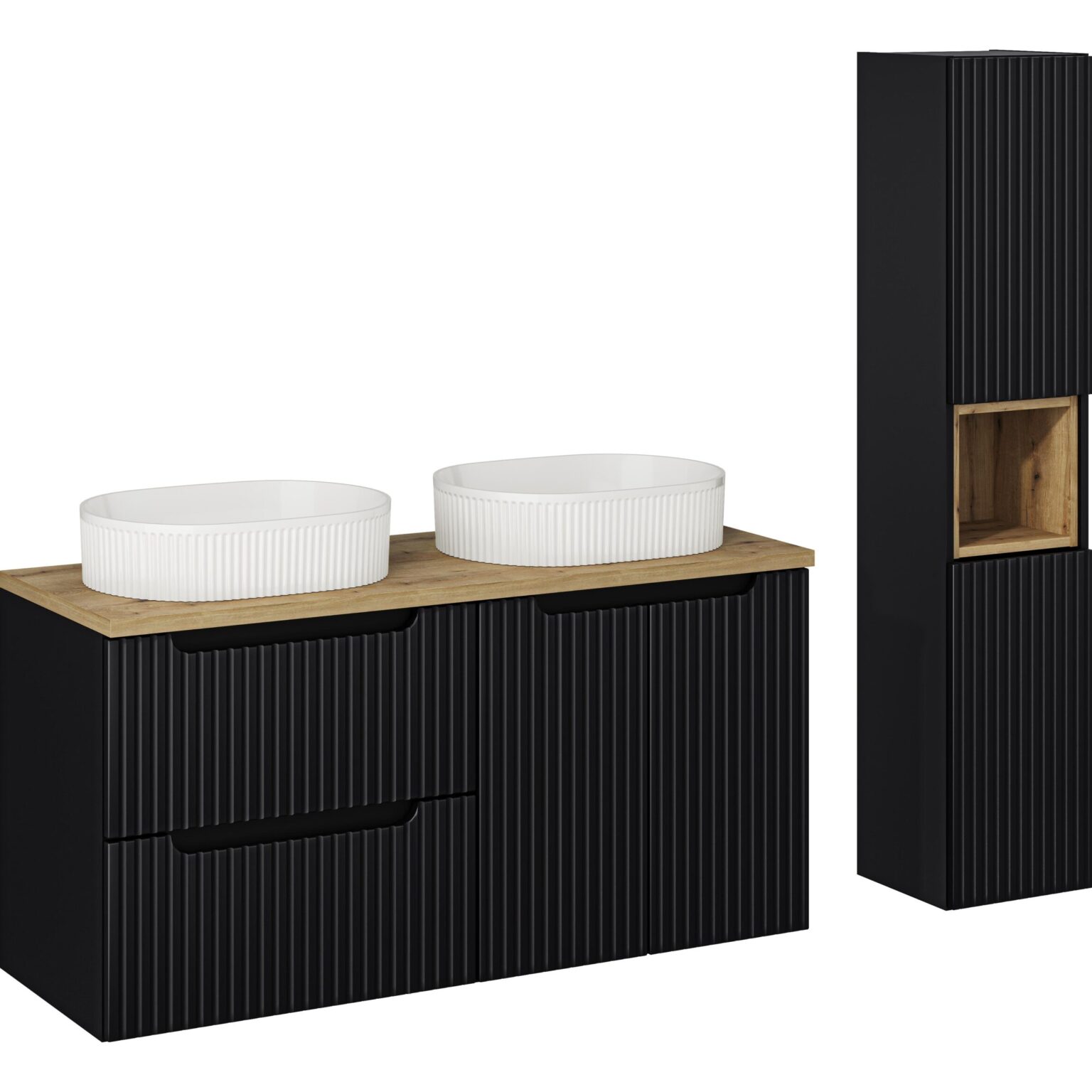 NOVA BLACK komplett fürdőszoba bútor szett 140 cm SET-NOB B OAK 140CM UN BEYOND WH LR-NB