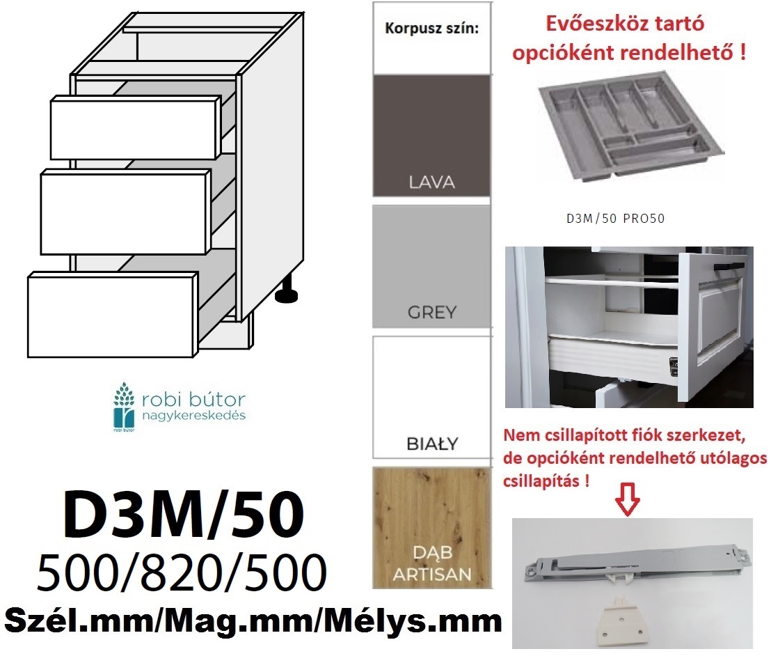 AMARO konyhabútor 3 FIÓKOS szekrény 50 cm (D3M 50)_konyhabútor