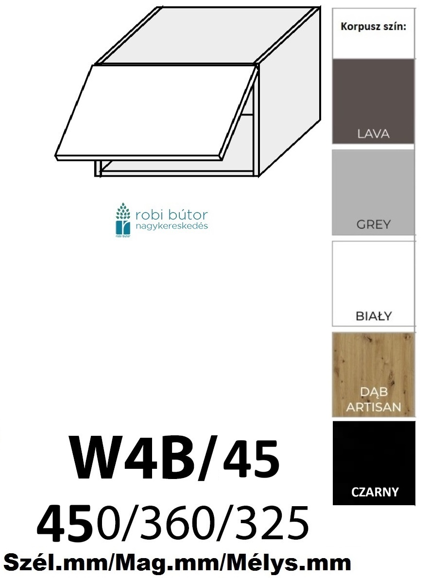BRERRA MATT KONYHABÚTOR 1-ajtós FELSŐ szekrény 45cm (W6B45_HK_aventos)_elemes konyhabútor