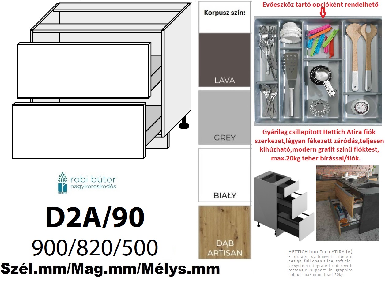 FORLI MATT 2 FIÓKOS szekrény 90 cm (D2A 90)_konyhabútor