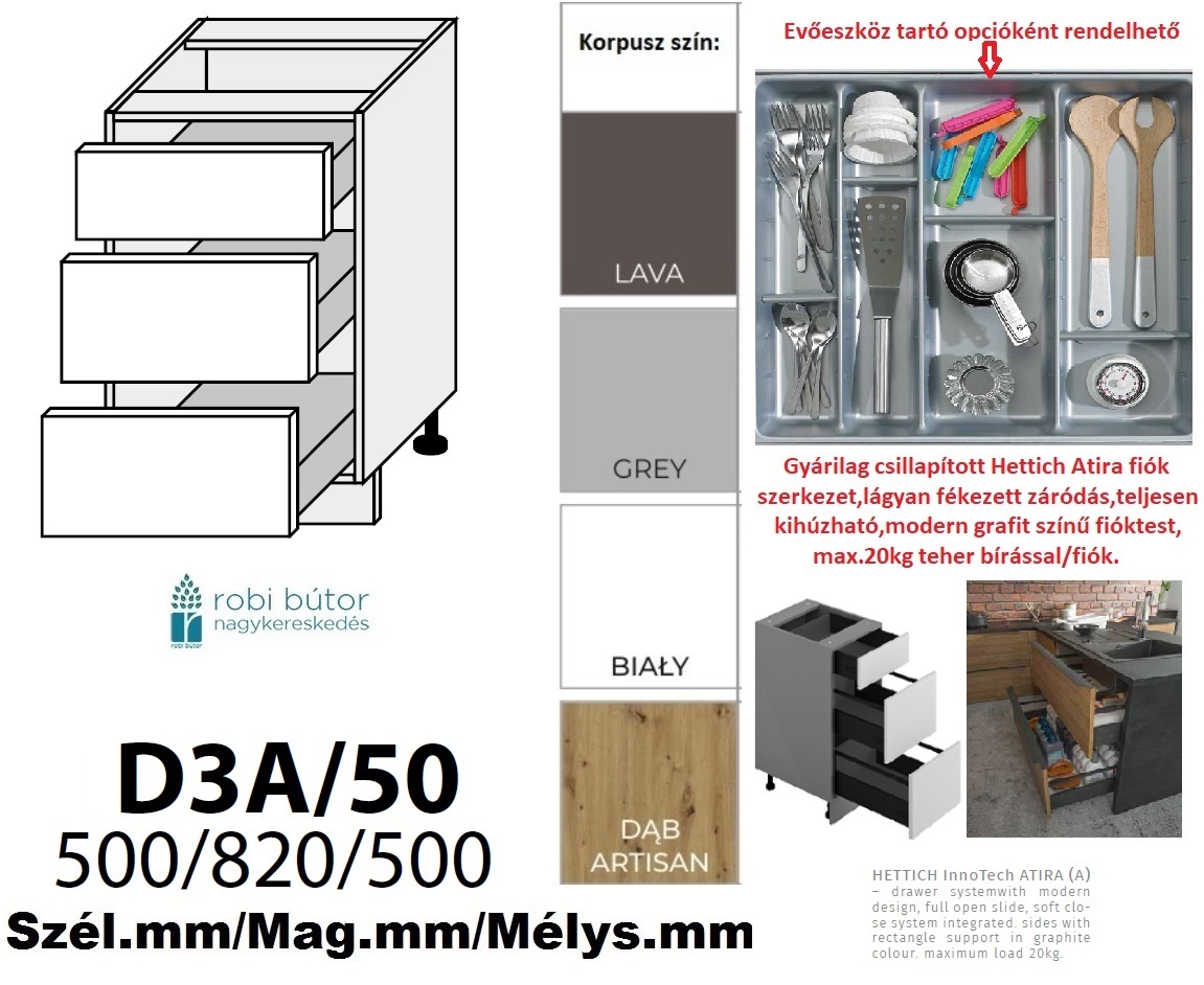 Moduláris felépítés: több korpusz- és fiókmegoldás, sarok, magas és gépbeépítős elemek.