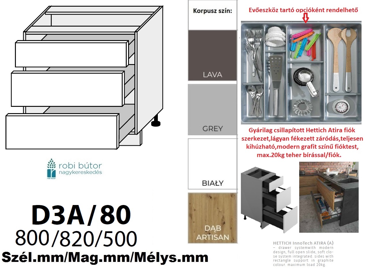 PRATO MATT 3 FIÓKOS szekrény 80 cm (D3A 80)_konyhabútor