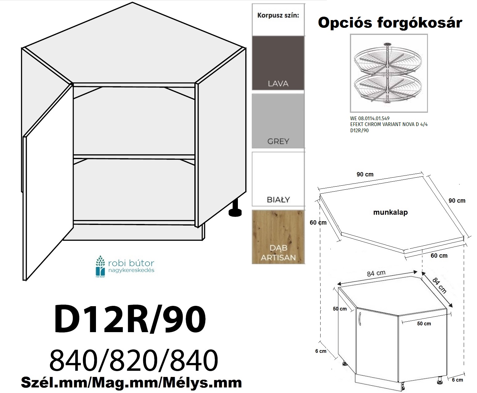 PRATO MATT (D12 90+KOSZ) CARGO KOSARAS SAROK szekrény 90 cm_Konyhabútor