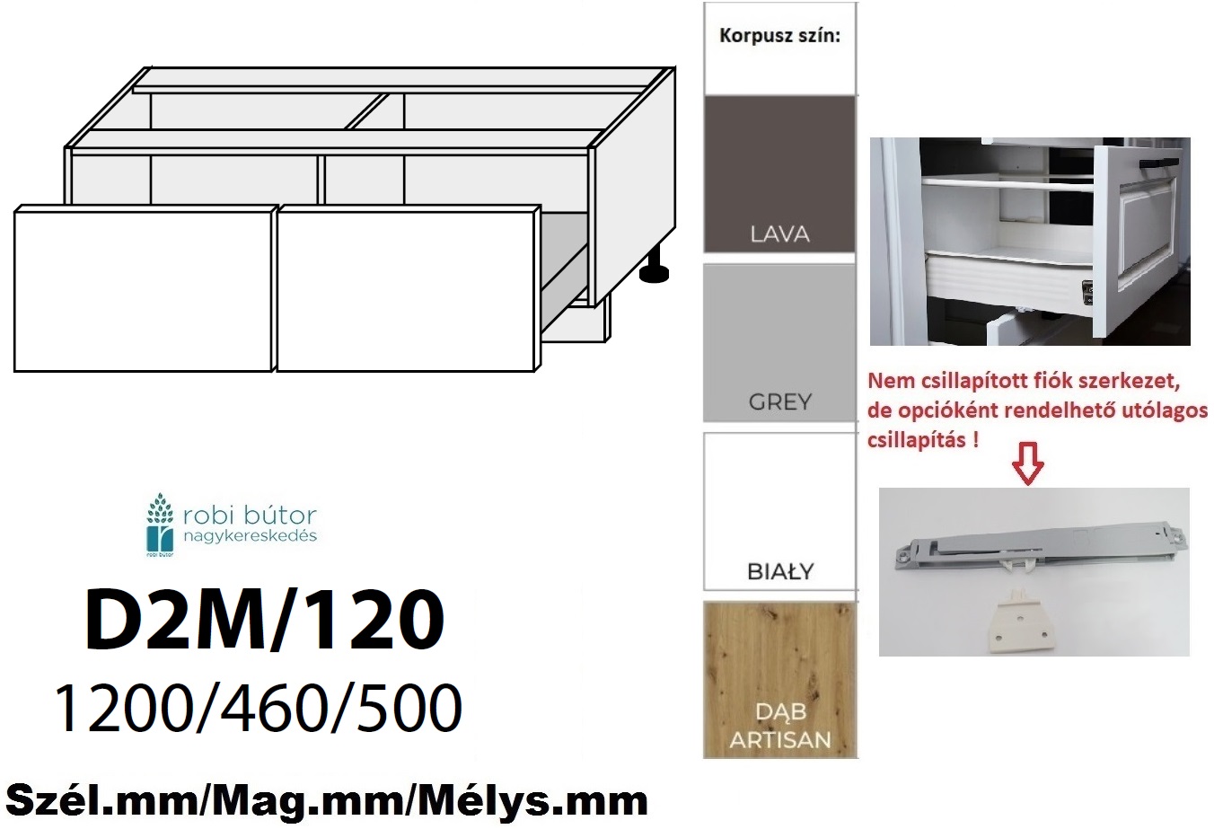 CARRINI MAGASFÉNYŰ AKRYL (D2M 120) 2 FIÓKOS szekrény 120 cm_konyhabútor