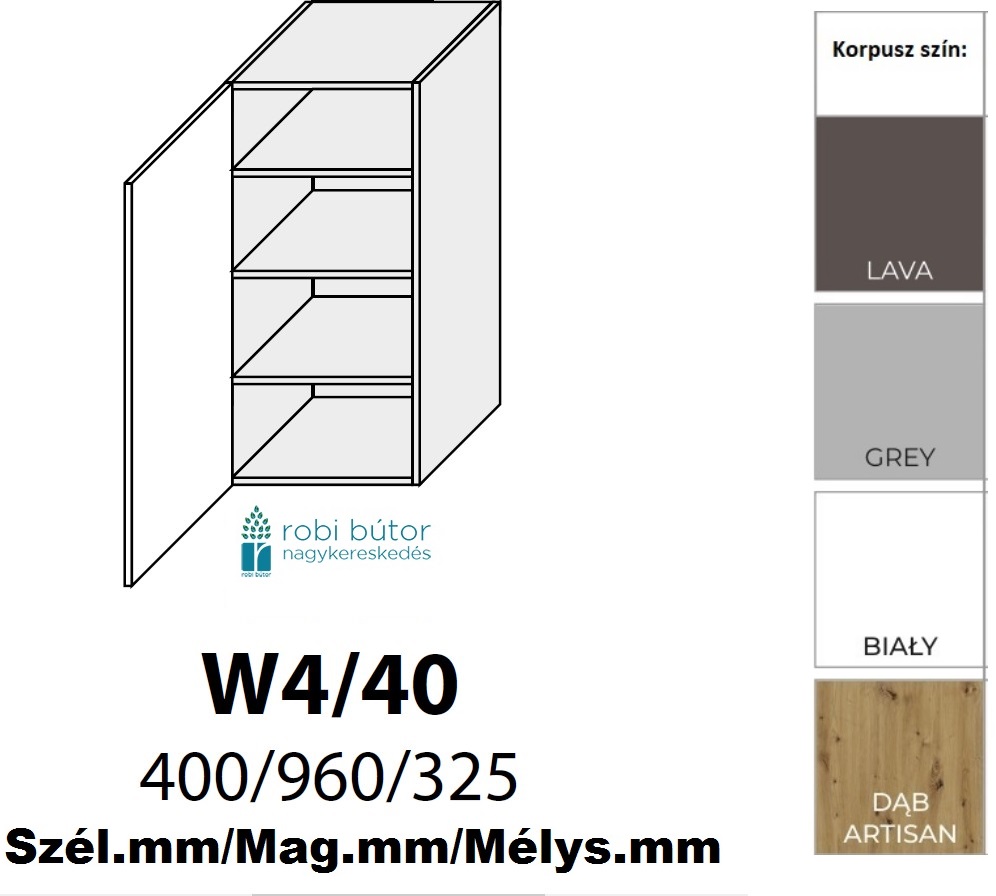 CARRINI MAGASFÉNYŰ AKRYL 1-ajtós FELSŐ szekrény 40 cm (W6B 40)_konyhabútor