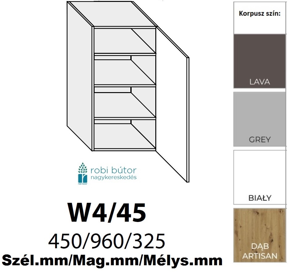 CARRINI MAGASFÉNYŰ AKRYL 1-ajtós FELSŐ szekrény 45 cm JOBBOS (W4 45 P)_konyhabútor