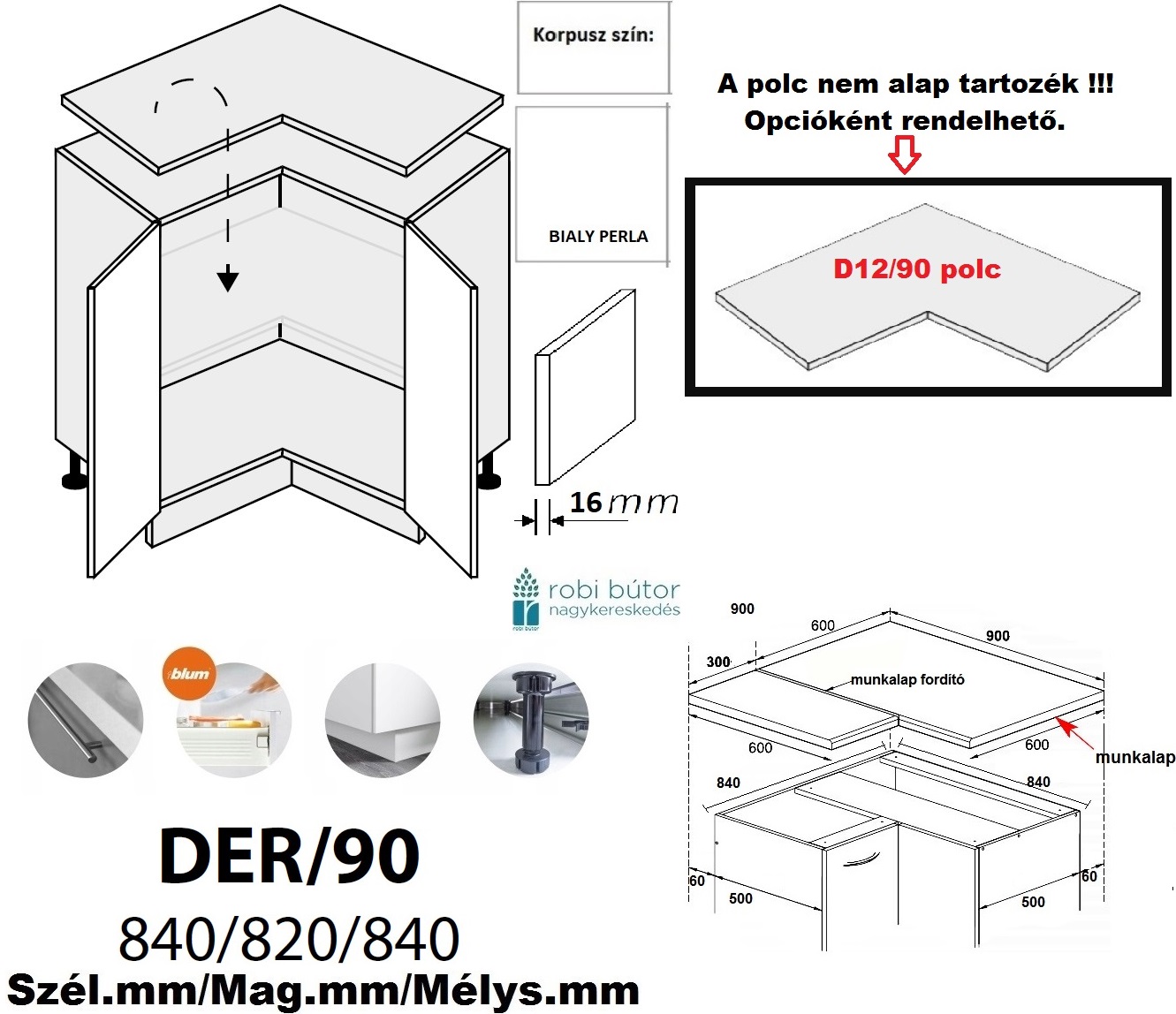 ESSEN TREND 2 AJTÓS SAROK szekrény 90 cm (DER/90)-konyhabútor