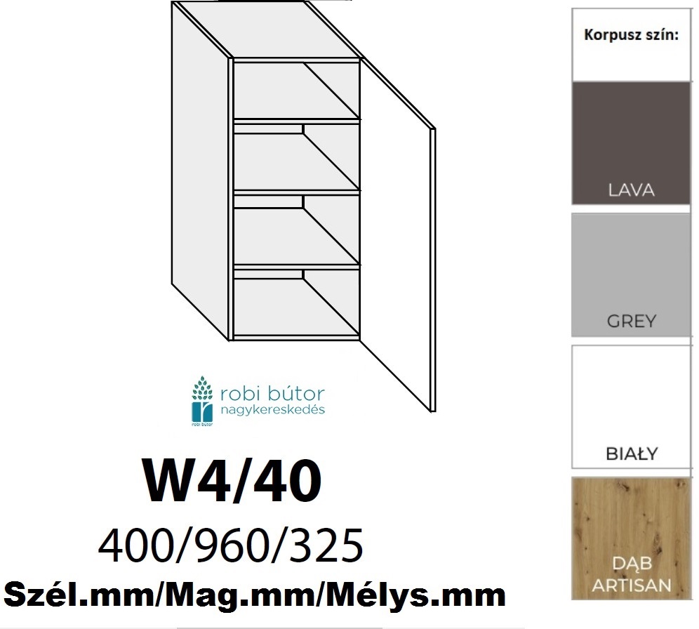 FIUGGI MATT 1-ajtós FELSŐ szekrény 40 cm JOBBOS (W4 40 P)_konyhabútor