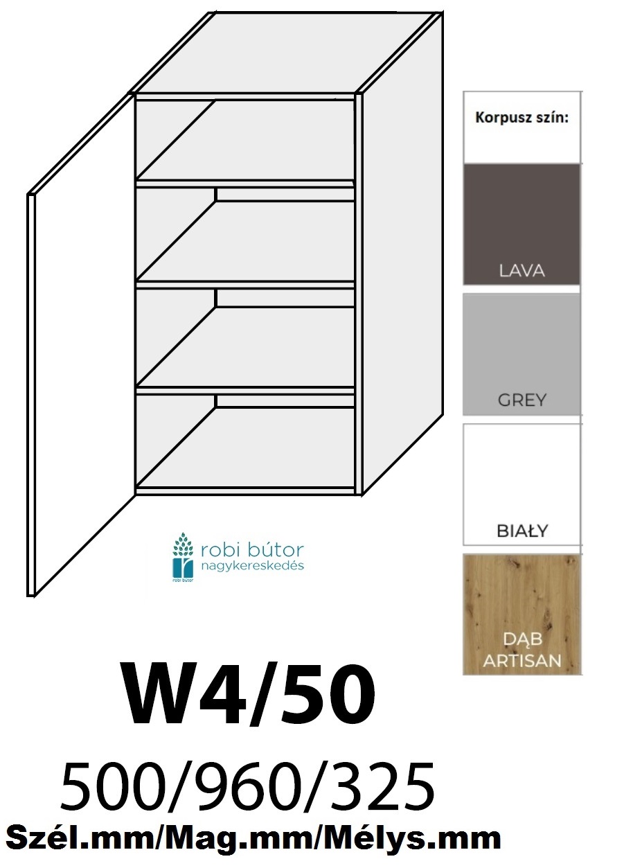 62390 Ft (27% ÁFÁ-t tartalmaz)LIVORNO MATT 1-ajtós FELSŐ szekrény 50 cm (W4 50) _konyhabútor