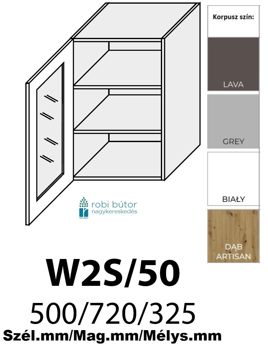 LIVORNO MATT 1-ajtós ÜVEGES FELSŐ szekrény 50 cm (W2S 50 )_konyhabútor