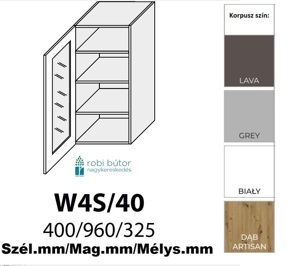 LIVORNO MATT 1-ajtós ÜVEGES FELSŐ szekrény 40 cm (W2S 40 )_konyhabútor