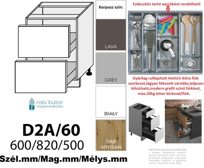 PLATINUM MAGASFÉNYŰ 2 FIÓKOS szekrény 60 cm (D2A 60)_konyhabútor