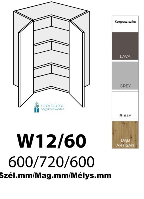 51950 Ft (27% ÁFÁ-t tartalmaz)PLATINUM MAGASFÉNYŰ 2-ajtós SAROK FELSŐ szekr. 60 cm (W12 60)_konyhabútor