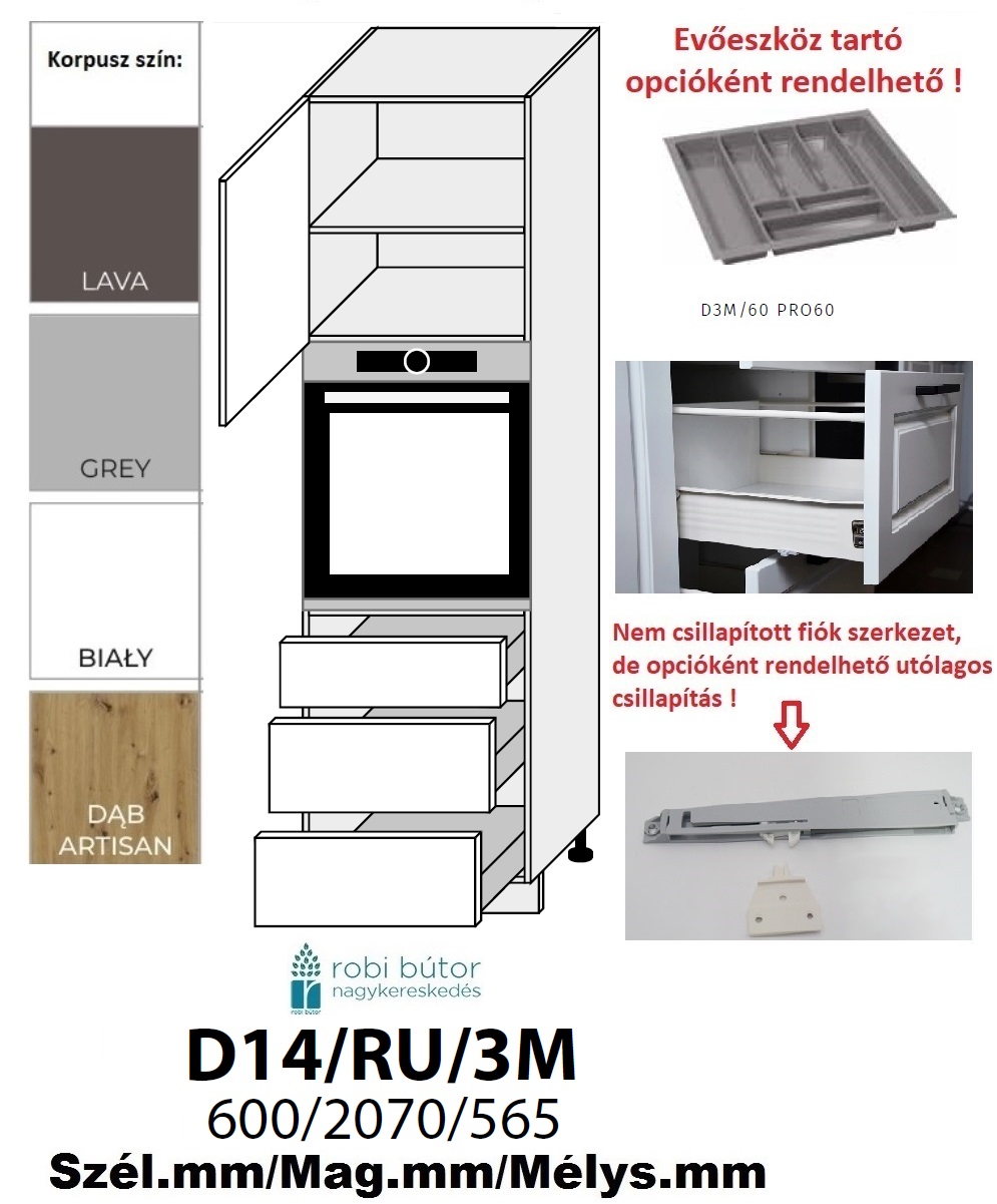 QUANTUM MATT 1-AJTÓS 3 FIÓKOS SÜTŐ BEÉP. SZEKR.60CM (D14RU3M)_KONYHABÚTOR