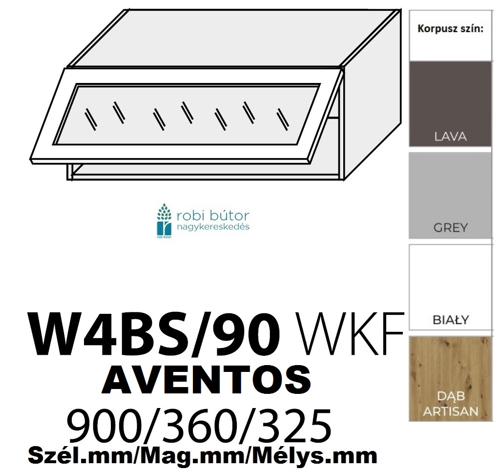 49010 Ft (27% ÁFÁ-t tartalmaz)QUANTUM MATT (W4BS90 WKF AVENTOS) 1-ajtós FELSŐ szekrény 90 cm_konyhabútor