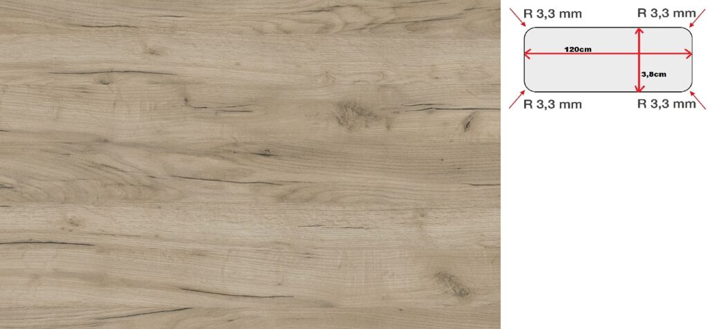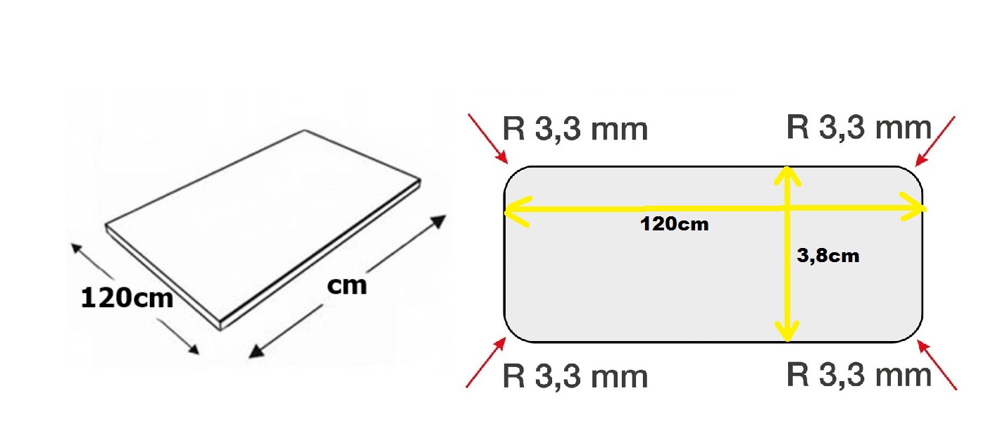 – A munkalap mindkét hosszanti éle 3,3 mm-es rádiusszal kerekített alul-felül.