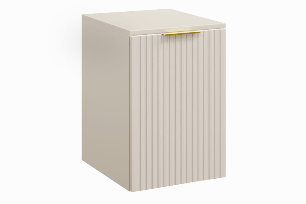 Az ADEL KASMIR kollekció finom kasmír árnyalatú, hornyolt MDF előlapokkal és prémium illesztésekkel készül. A fiókok és ajtók csendes, csillapított záródásúak. A rendszer modern, falra szerelhető elemekkel érhető el, így a fürdő könnyebbnek, rendezettebbnek hat, és könnyebb takarítani. Lengyel gyártás, stabil minőség, hivatalos 2 év garancia.