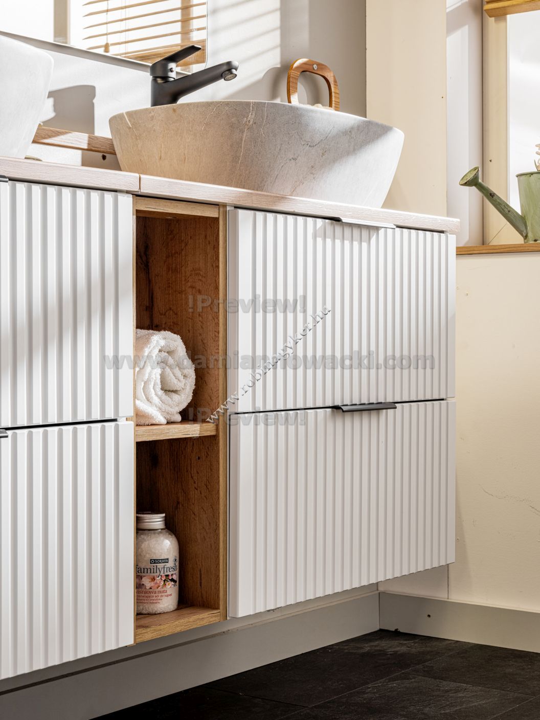 Az új ADEL kollekció már FEHÉR színben is elérhető, függőlegesen mart előlapokkal kombinálva. Ennek a kombinációnak köszönhetően a kollekció bútorai univerzálisak és ideálisak mind a modern, mind a klasszikus elrendezésekhez, magas funkcionalitásuk pedig a legigényesebb felhasználó számára is kényelmet biztosít.