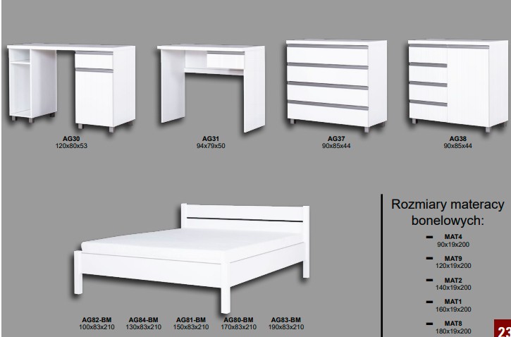 Ezen gyártó legújabb családja a AGA, letisztult skandináv jellegű bútorcsalád. 25 elem közül válogathat mindenki kedvére az igényelt lakóterületre a megfelelő termékek kiválasztásával. Akár felnőtt, akár ifjúsági szoba berendezésére is ajánljuk. A fogantyúk ergonomikus fogást biztosítanak a magas minőségi 16 mm vastag laminált faforgácslapból készült elemek esetén. Az ABS élzárás is a hosszú élettartalmat biztosítja generációról generációra.