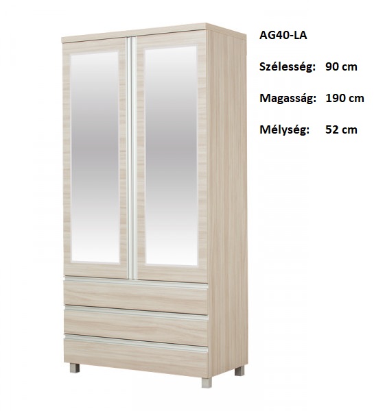 Az összeállítás elemei:AG40-LA 2ajtós üveges szekrény.3fiókkal . 90/190/52(szél./mag./mélys.)