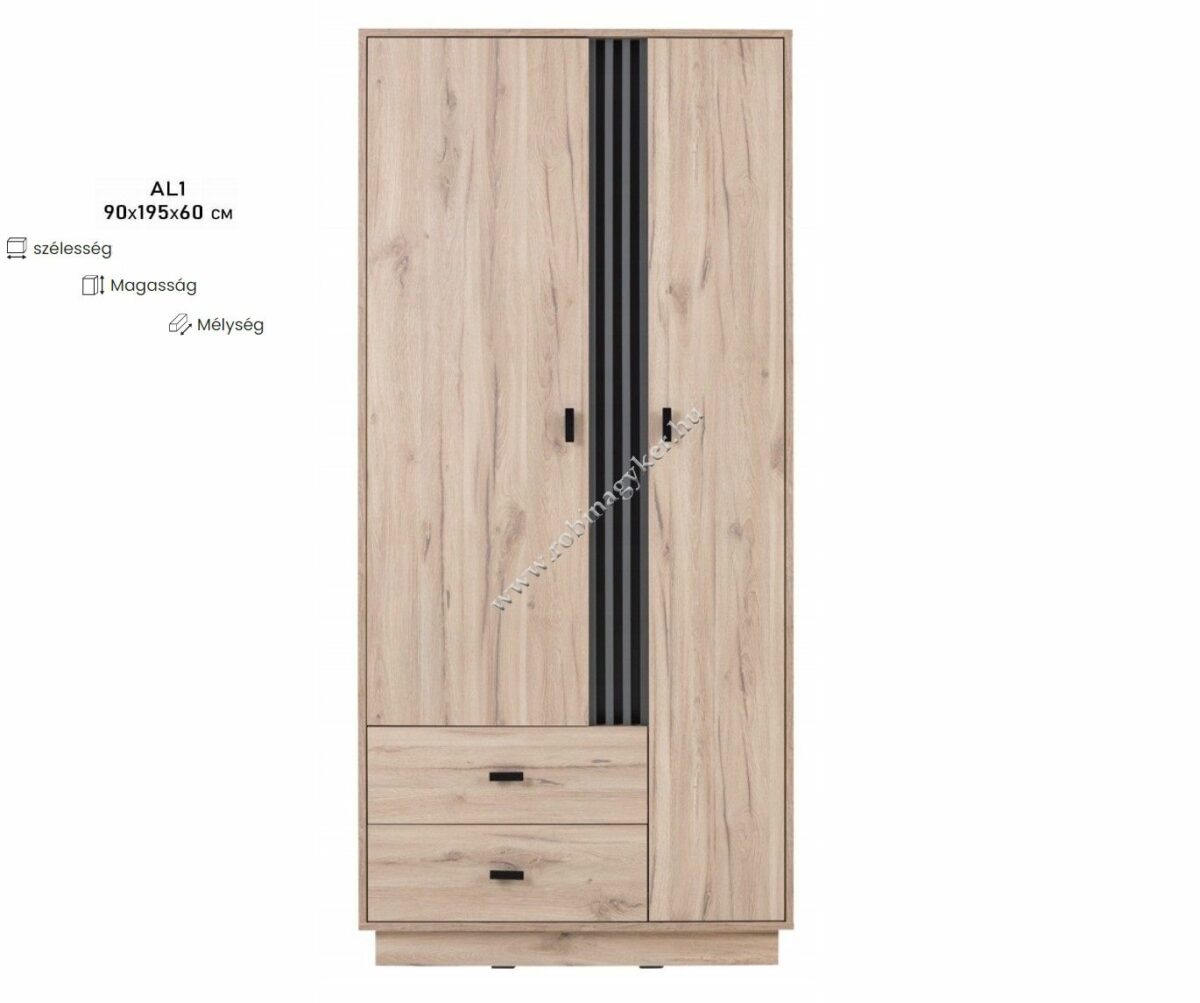 AL1 gardrób szekrény 90/195/60cm (szél./mag./mélys.)