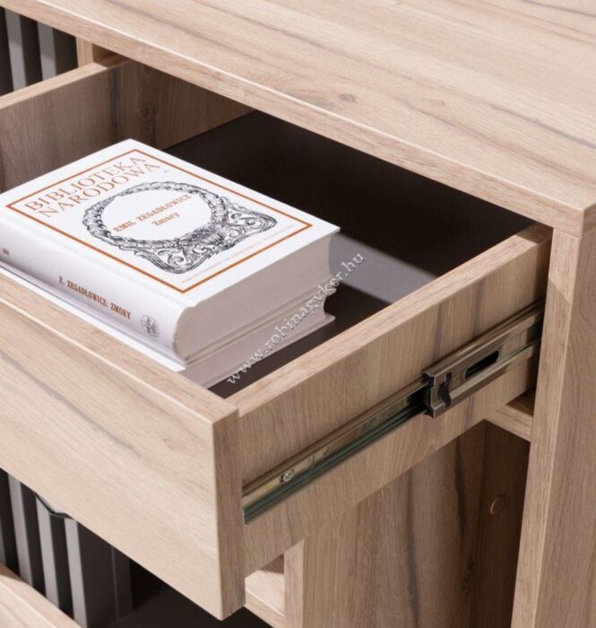 Ezen gyártó legújabb termék családja egyedi ötletekkel és megbízható minőséggel készült azon vásárlók számára akik kedvelik a modern és praktikus bútorokat. Az ALLMO bútor család 14 eleméből lehet válogatni a kívánt összeállítást . Az ALLMO bútorkollekció a legigényesebb vásárlók számára készült. Az ALLMO kollekció olyan elemes bútorokat tartalmaz, amelyek tökéletesek a modern elrendezésekhez, de a klasszikus enteriőrökhöz is. Az ALLMO bútorok a garanciája a gyönyörűen kidolgozott nappalinak, de mindenekelőtt karaktert kölcsönöz neki. Kétségtelen, hogy a faszerű frontok antracit lamella betéttel kombinálva eredeti és modern dizájnt teremtenek a helyiségben. A kollekció fekete fogantyúkkal rendelkezik, amelyek a természetes fa színével kombinálva egy meleg és hangulatos szoba benyomását keltik.