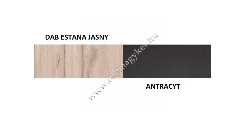 A képen látható szín összeállítás: ESTANA VILÁGOS TÖLGY matt  / ANTRACYT matt dekor