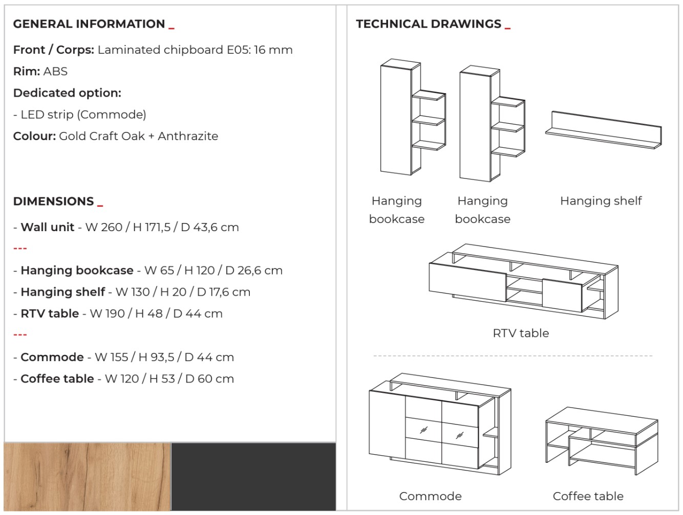 # Rendelhető szín: DAB CRAFT MATT / ANTRACYT MATT