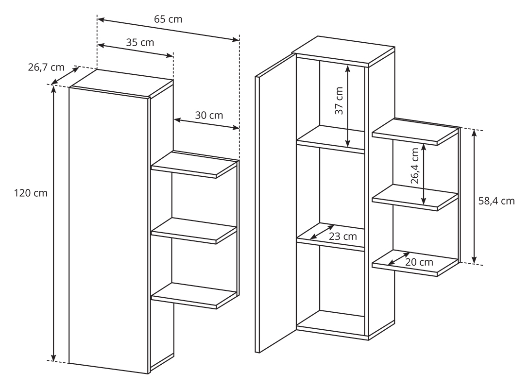 Szélesség: 260 cm # Magasság: 171,5 cm # Mélység: 30-40 cm