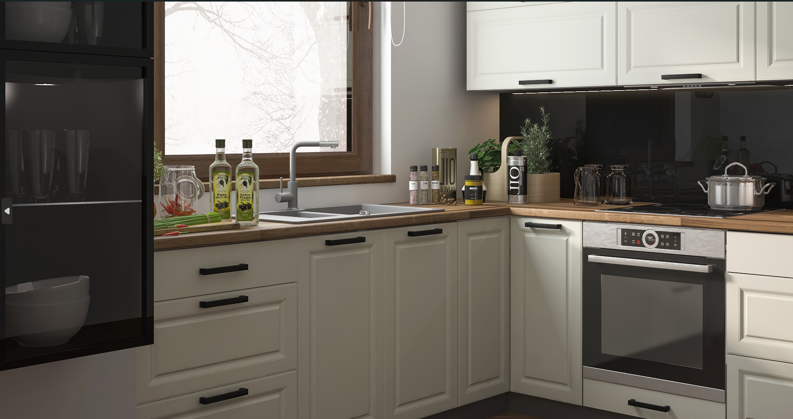 Összhang a teljes térrel: munkalap, hátfal, kiegészítők