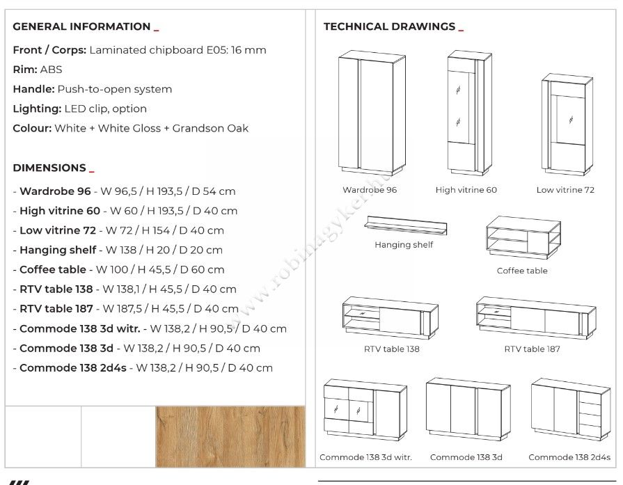 Rendelhető szín: BIALY/FEHÉR MATT korpusz / BIALY FEHÉR MAGASFÉNYŰ front / DAB GRANDSON MATT dekor