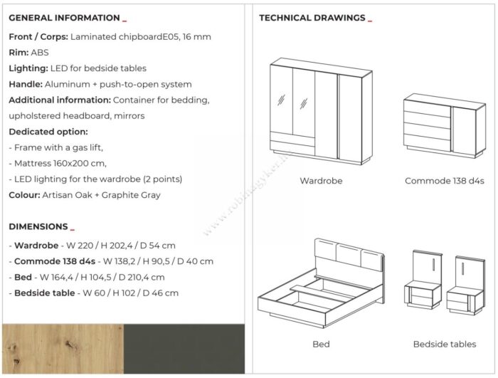 Rendelhető szín: ARTISAN TÖLGY korpusz és front, GRAFIT dekor