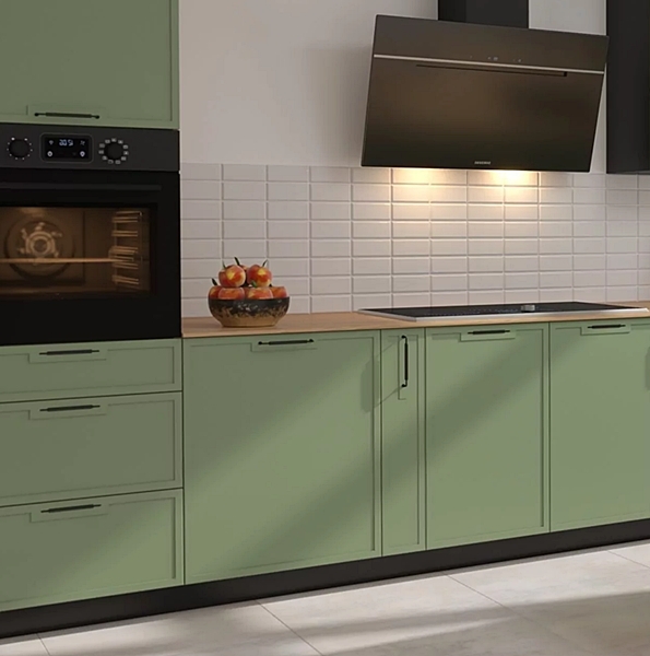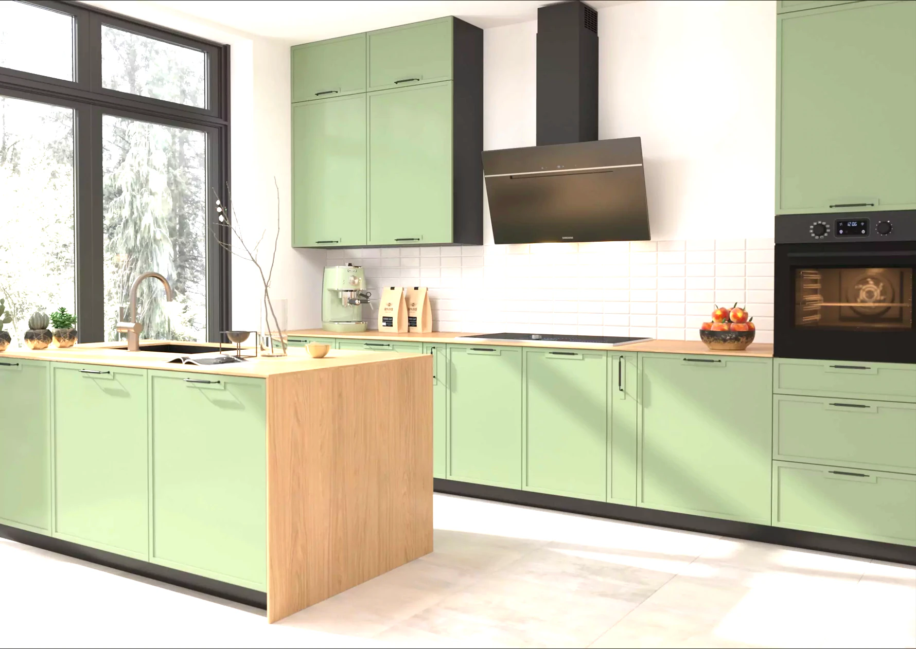 Ha olyan konyhabútor megoldást keresel, amely egyszerre mutat jól világos, minimalista térben, markánsabb sötét enteriőrben vagy természetes fa hatású környezetben is, akkor az AREZZO kifejezetten erős választás lehet. A csatolt képek alapján a család különösen sokoldalú: fehér sarokelrendezésben könnyed és friss, grafit kivitelben modern és határozott, halványkék árnyalatban finom és otthonos, sötét bordós tónusban pedig elegáns és prémiumhangulatú. A zöld változat szintén nagyon karakteres, főként fekete részletekkel és fa munkalappal társítva.