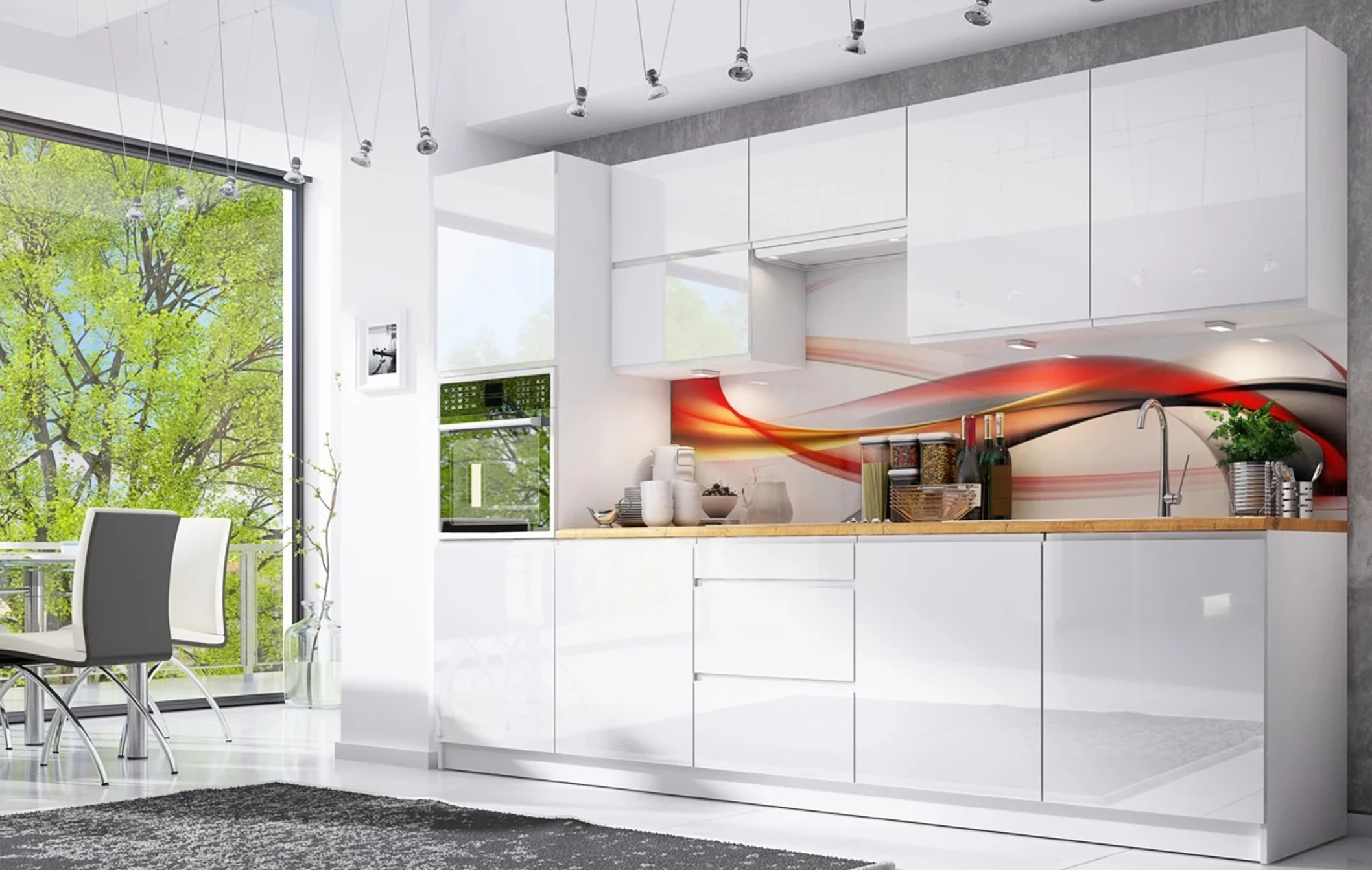 Fényes, tágas hatás – optikailag növeli a konyha méretét, világosabbá teszi a teret.