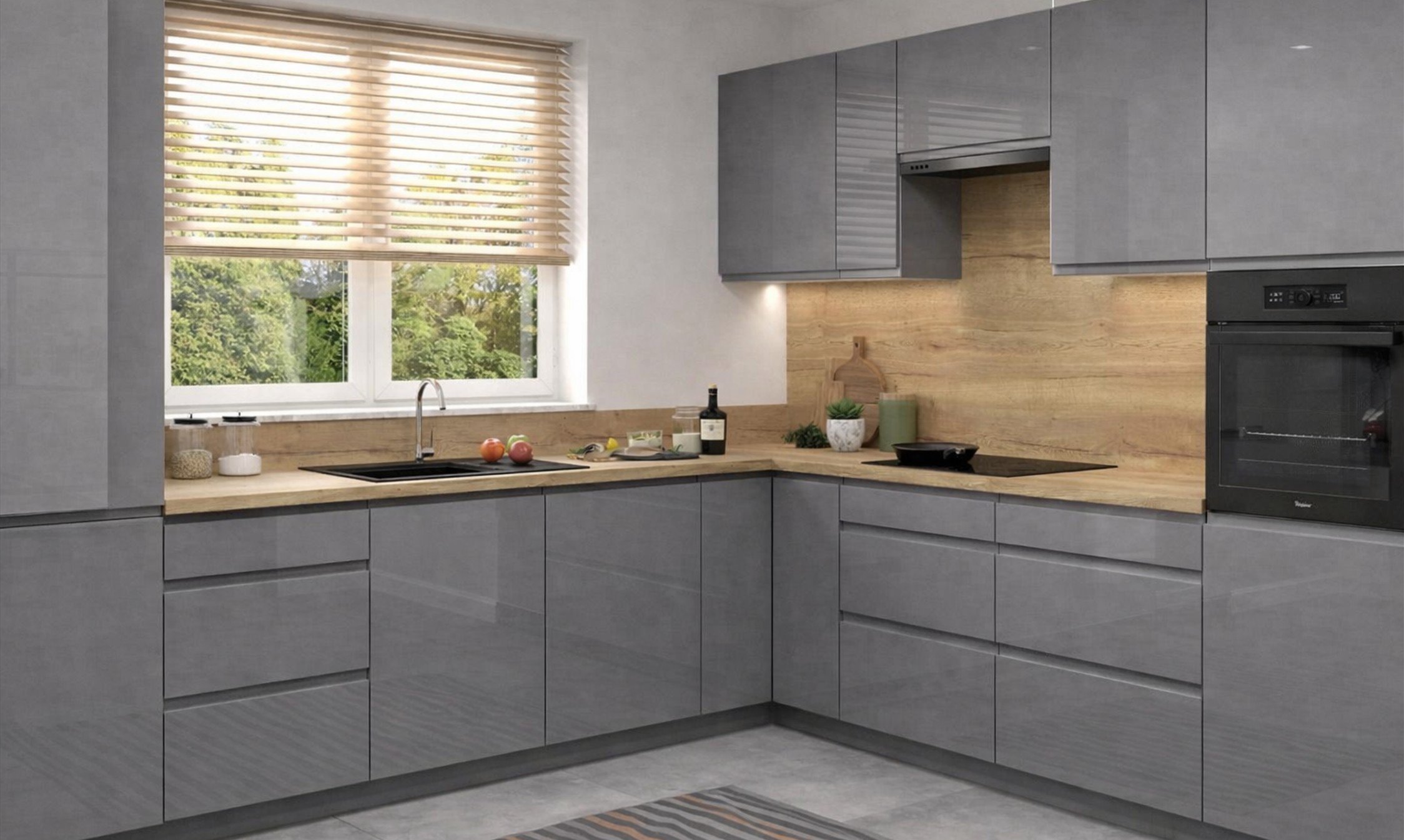 ASPEN elemes konyhabútor szürke magasfényű ajtókkal