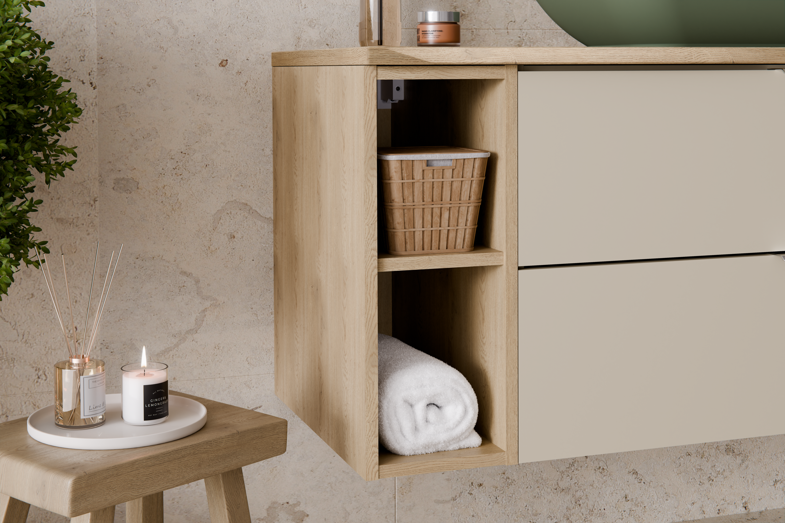 Aster Green – modern, elemes megoldás a rendezett, stílusos fürdőszobához