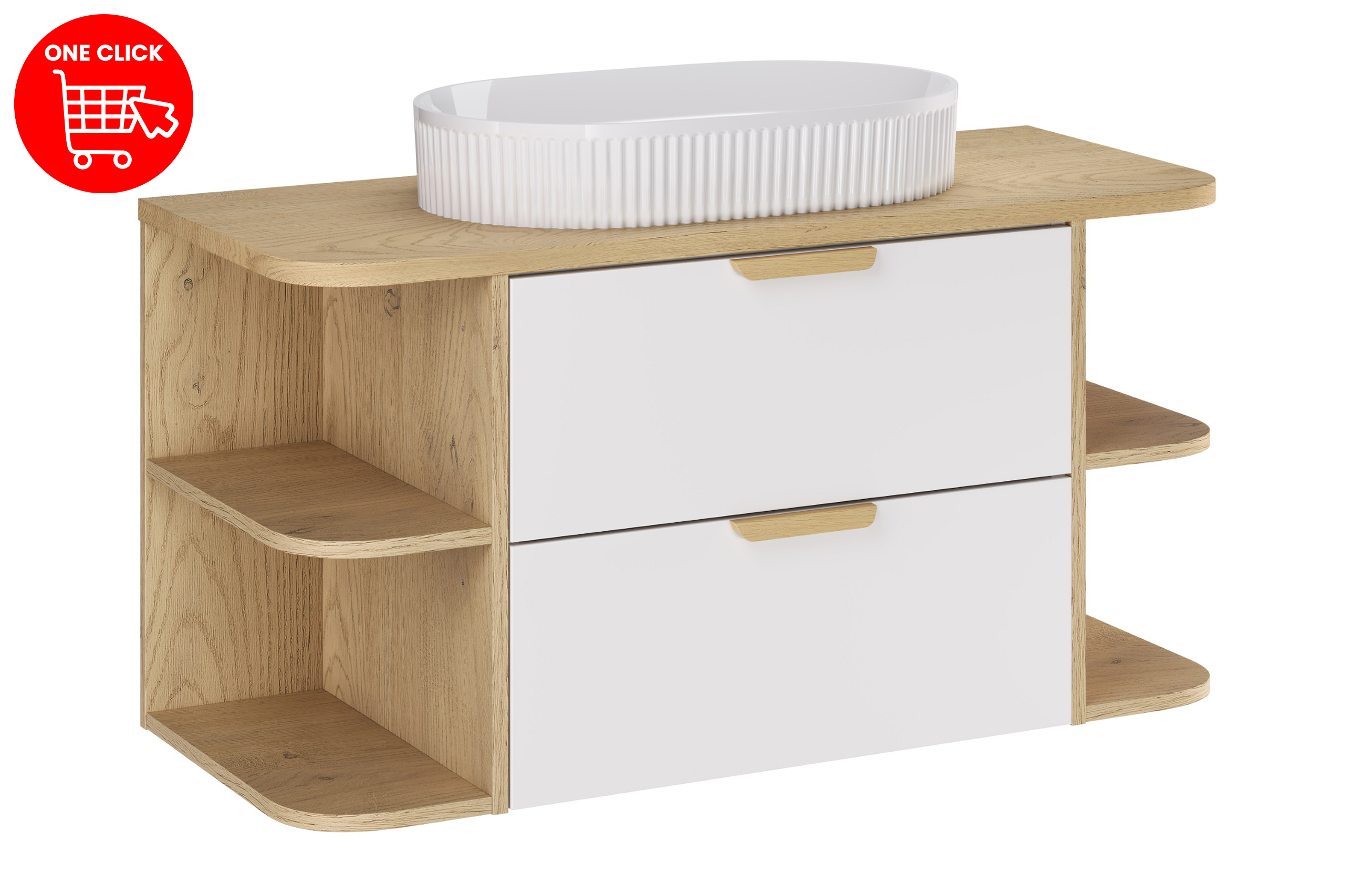 ASTER WHITE komplett fürdőszoba bútor szett 100 cm – pulttal + mosdóval + polcelemekkel (SET-ASW B CREMONA 100CM LRSM UN BEYOND)
