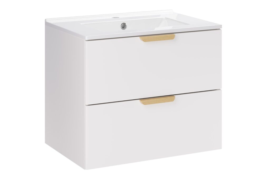 Ha olyan fürdőszoba bútor megoldást keresel, amely hosszú távon is időtálló, az ASTER WHITE kollekció jó kiindulópont. A sorozat vizuális világa a minimalizmusra épít: matt fehér, sima frontok, finom vonalvezetés és meleg, tölgyhatású részletek. A kontraszt nem harsány, inkább „csendes” elegancia – ezért könnyen illeszkedik modern, skandináv, japandi vagy akár klasszikusabb fürdőszobákba is.
