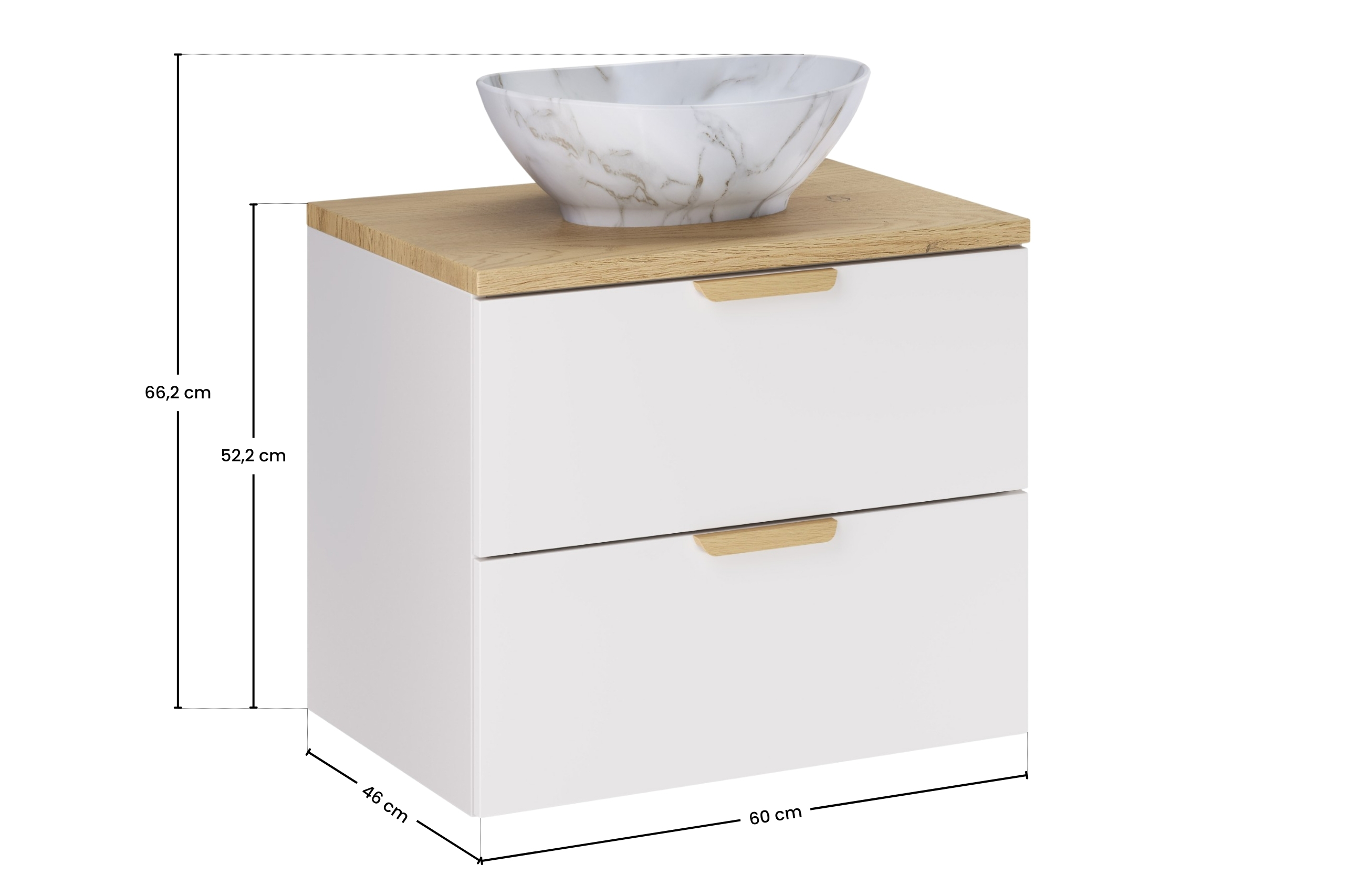 ASTER WHITE komplett fürdőszoba bútor szett 60 cm – pulttal + mosdóval (SET-ASW B CREMONA 60CM UN PATI)