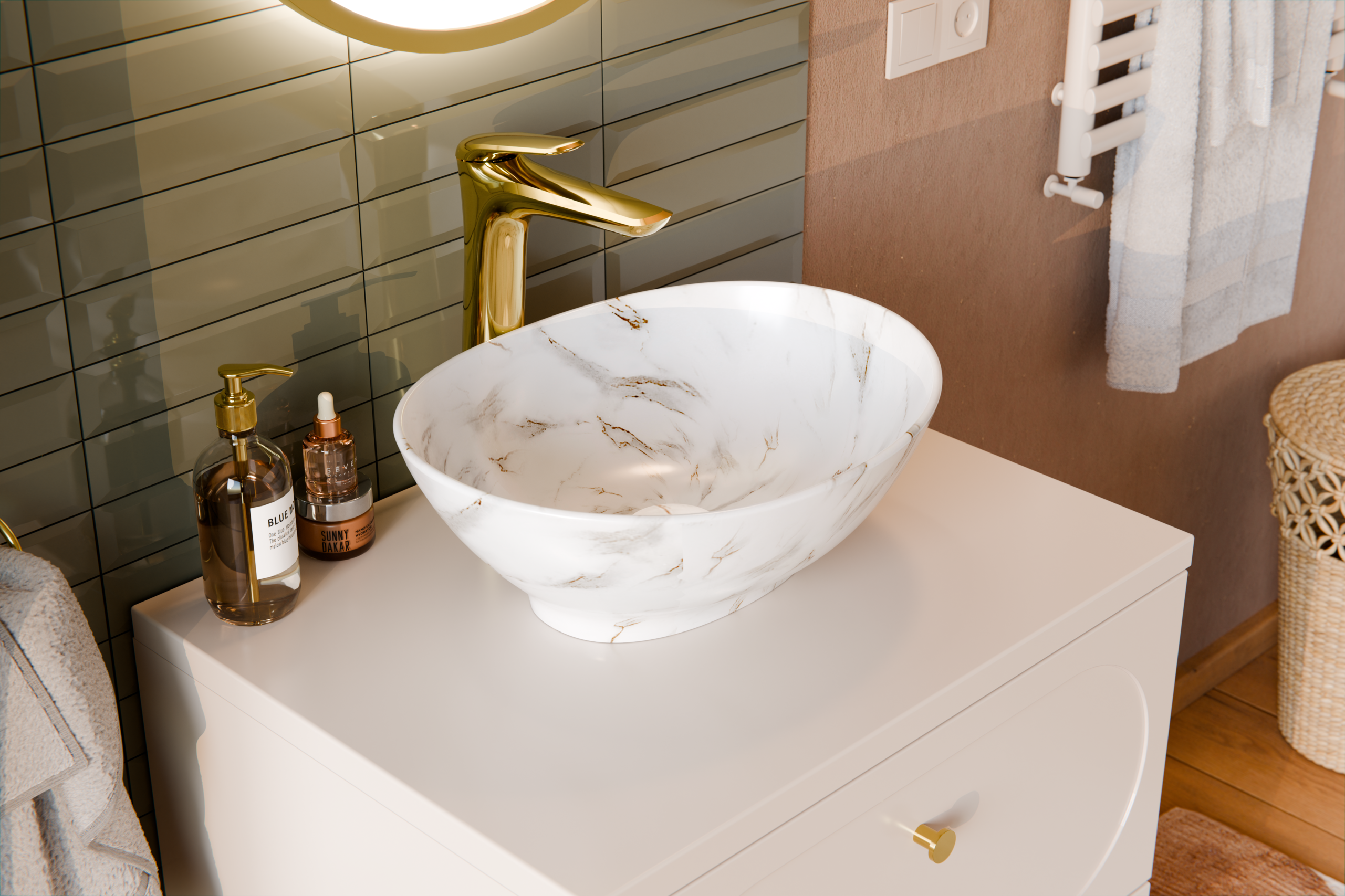 Az Aster White stílusához mindkettő passzol, csak más hangulatot ad. Az integrált mosdó letisztult, könnyen tisztítható és egységes felületet ad, ezért praktikus családi fürdőbe. A pultos mosdótál design fókuszt ad, és egy kicsit „spa” élményt hoz a mindennapokba.