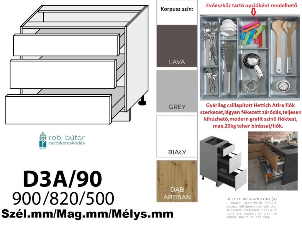 – Rendelhető kiegészítők: munkalap, munkalap összekötők/-fordítók/-végzárók, mosogató medence, csaptelep, külön fogantyúk, világítás, evőeszköz tartó az evőeszközös fiókba, felső elemek felrögzítéséhez fali szerelő sín. Ezen termékek rendelési feltételeiről minden esetben ügyfélszolgálatunkon, vagy a robi@robinagyker.hu E-mail címen tud felvilágosítást kérni.