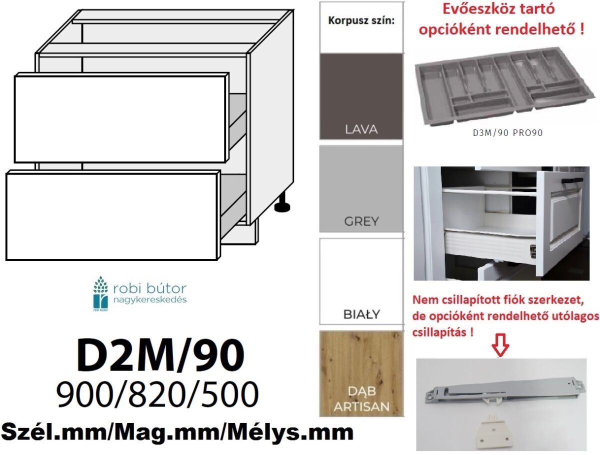 AVELLINO MATT (D2M 90) 2 FIÓKOS szekrény 90 cm_konyhabútor