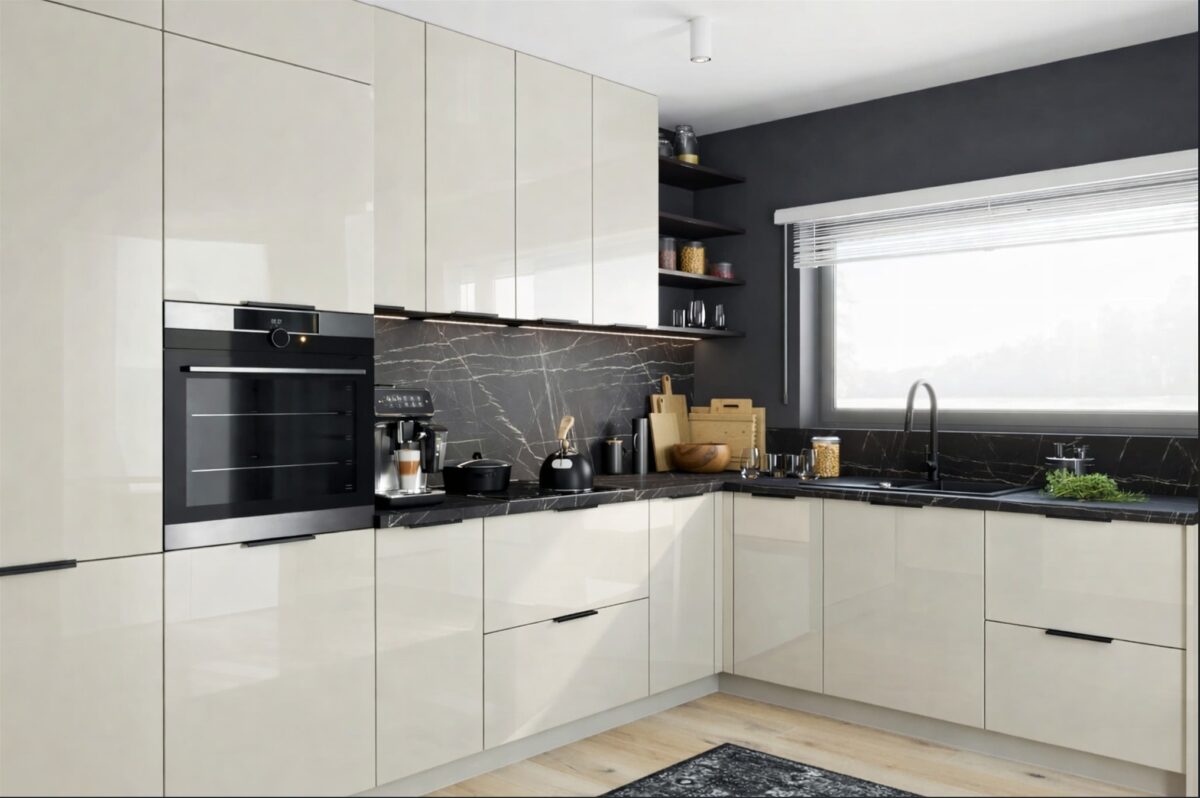 A magasfényű nem csak divat. Praktikusan is beválik: fényes, ragyogó, és a mindennapi tisztítás is egyszerű. Mikroszálas kendő, langyos víz és kímélő, alkoholmentes tisztítószer – általában ennyi elég a felület frissen tartásához.